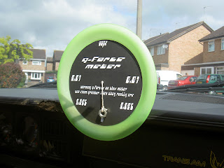 The G-force meter was inspired by one I saw on a Skyline GTR but instead of complex japanese electronics I opted for a plastic plate, woolly string and and nut. I also added the stickers onto the bonnet that some of you had written messages/abuse onto in exchange for sponsorship money.